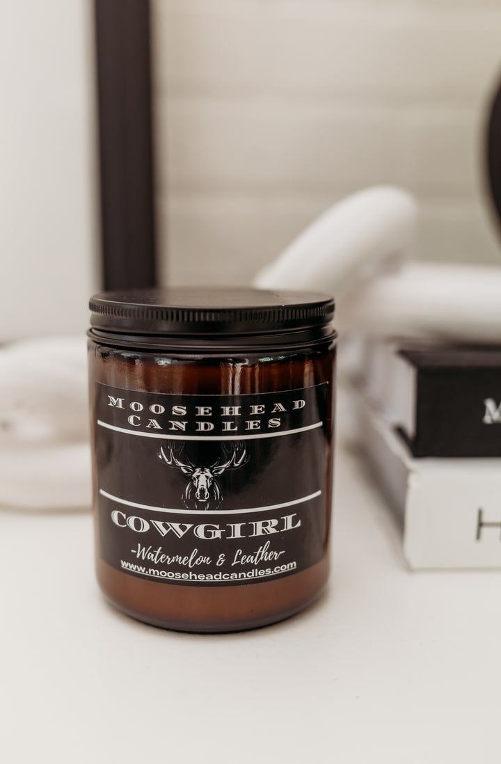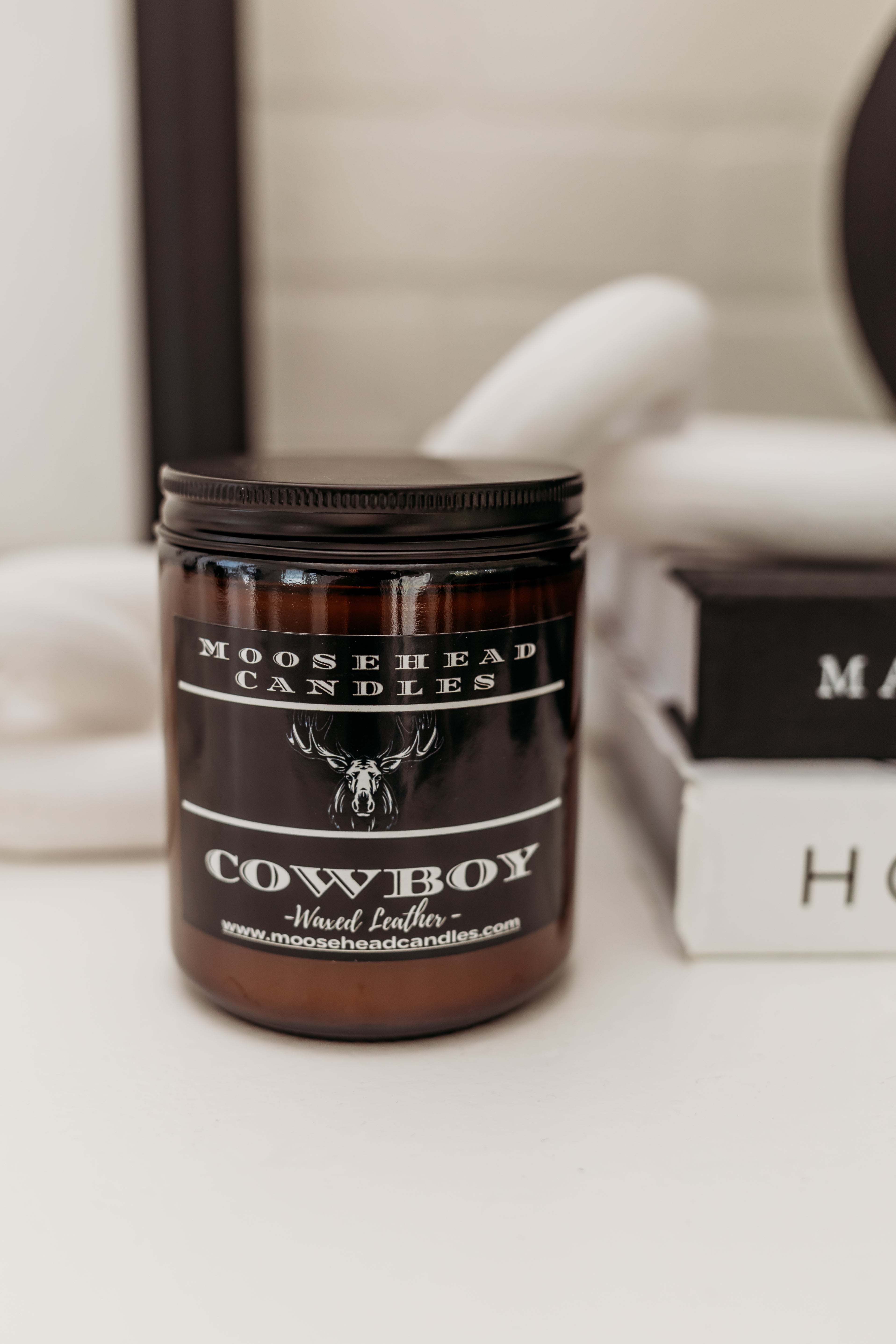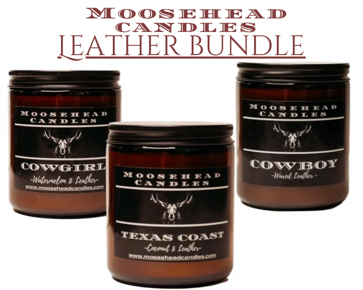 Leather Collection – 3 Pack of Full-Size 8oz Glass Jar Candles – Includes Watermelon Leather, Coconut Leather, and Original Cowboy Leather