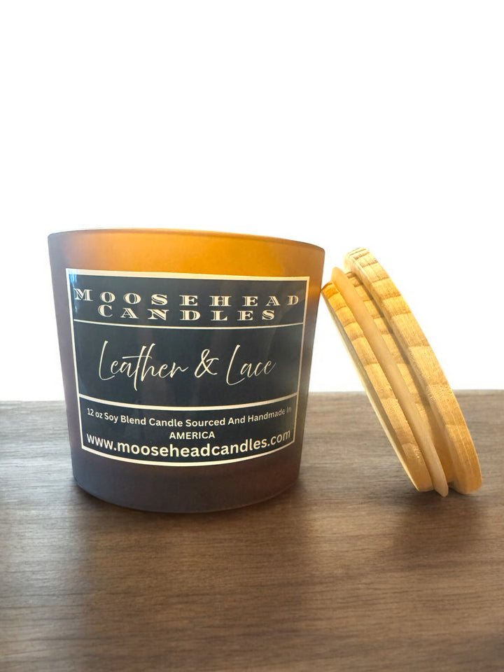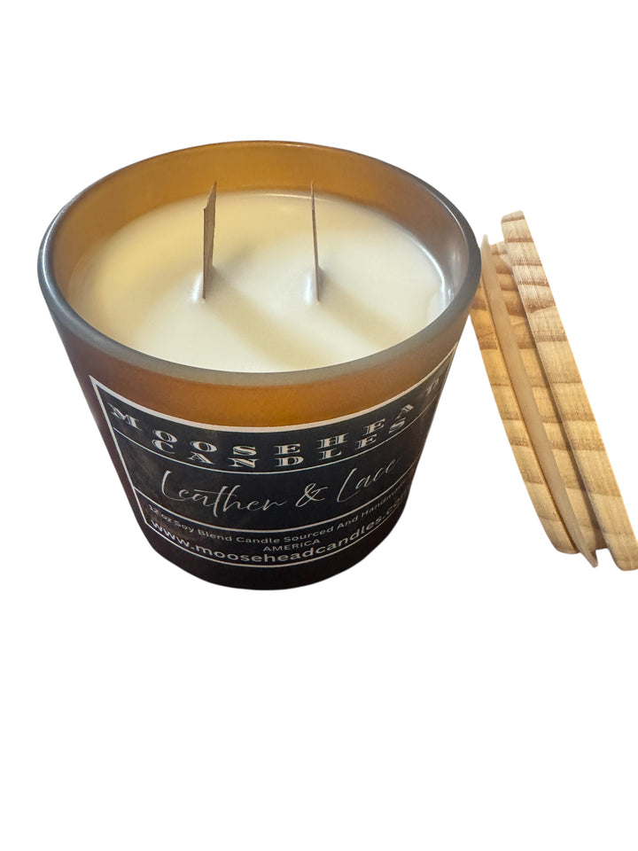 Leather & Lace XL 12oz Candle – Dual Crackling Wood Wicks | Soy Wax Blend in Reusable Glass Jar with Bamboo Lid