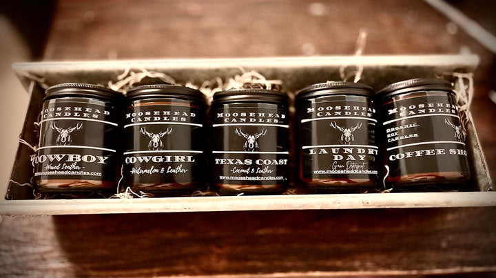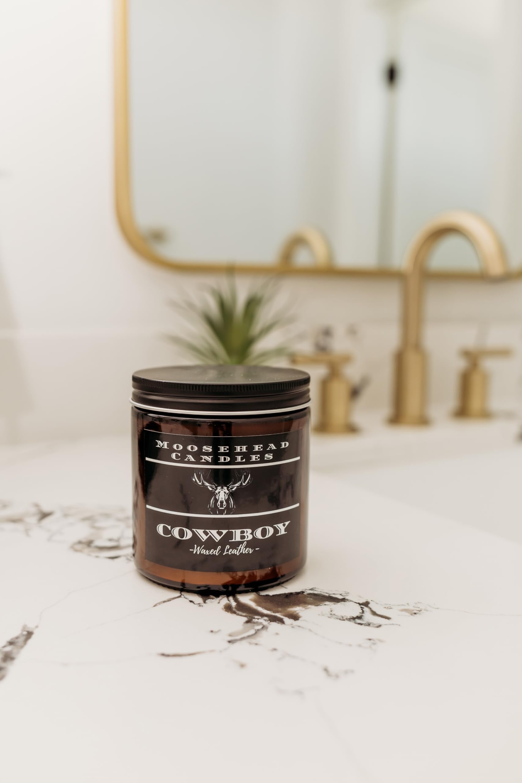 Leather scented candle, original leather soy wax candle with natural cotton wick | candle for men | by moosehead candles