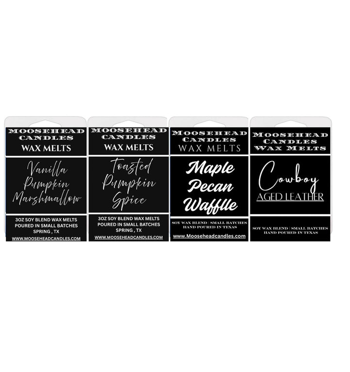 Moosehead Candles Fall Wax Melt Bundle – 4 Pack Autumn Scents – Vanilla Pumpkin Marshmallow, Pumpkin Spice, Aged Leather, Maple Pecan Waffles – Seasonal Home Fragrance