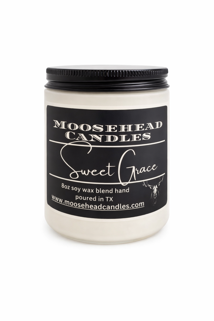 Sweet Grace Moosehead Candle – 8 oz Scented Gift Candle in Beautiful Amber Reusable Glass Jar with Metal Lid – Smoke-Free, Natural Cotton Wick, Hand-Poured Soy Blend