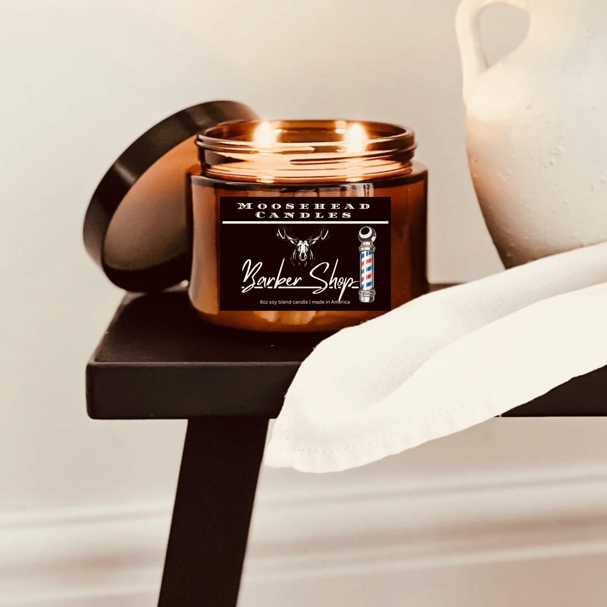 XL 16oz Barber Shop Candle | Dual Wooden Wicks | Lavender, Teak & Baby Powder Scent | Long-Lasting, Hand-Poured Candle.